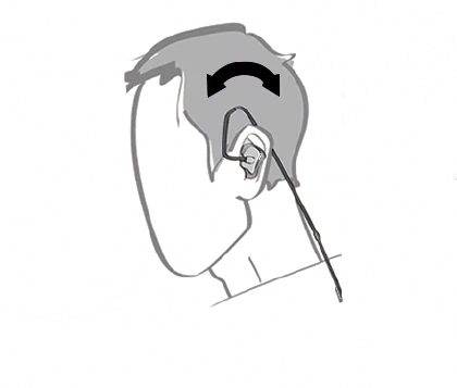 - Pull the top of your ear up and back to open up the ear canal.
