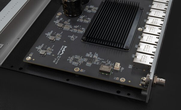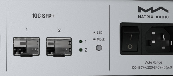 For the utmost flexibility, the Matrix Audio SS-1 Pro is equipped with two SFP/SFP+ ports with up to 10Gbps connection speed, allowing you to easily install optical fiber or RJ45 modules. SFP 10Gbps is more than fast enough for any audio streaming setup, but if it's not, SFP+ is an even better option for high-traffic networks where you may have a lot of computers and servers doing serious data at very long distances.