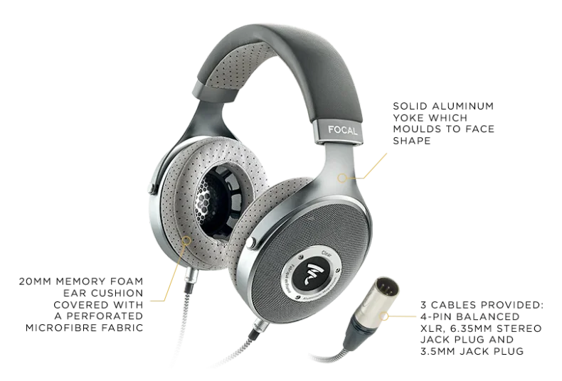 Focal Clear ear pads feature perforated microfiber covering 20mm memory foam ear cushions, offering true comfort for all head shapes and sizes.