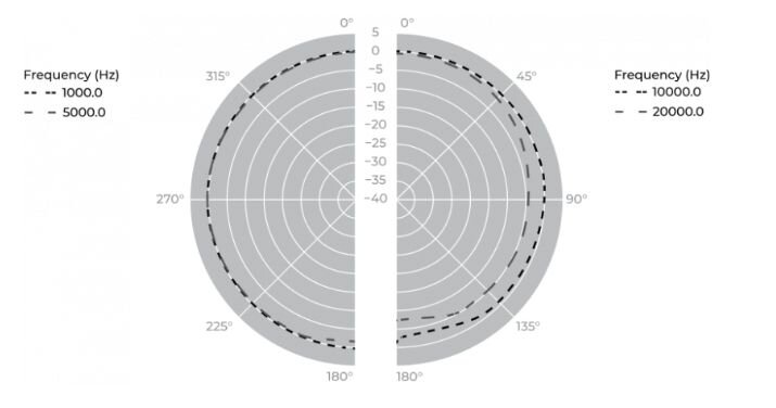A flat frequency response that extends from 3Hz to 23kHz, an exceptionally consistent omnidirectional polar response, 140dB SPL rating without distortion, and no handling noise.