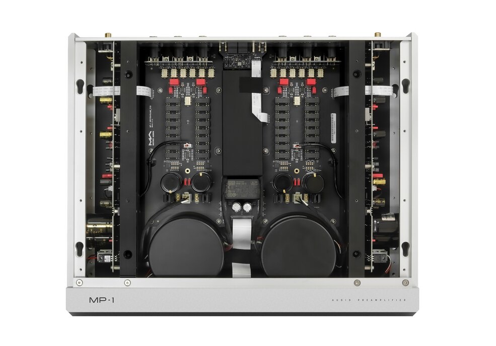 The MS-1 Pre features an integrated preamplifier that utilizes voltage-divider volume control via a resistor array. It employs four high-quality volume control units, each composed of 64 precision resistors with 0.001 accuracy and 32 fully sealed reed relays, rapidly switched by the MCU. This control method minimizes any impact on sound quality while ensuring excellent consistency between the two channels. The operation noise of the reed relays is virtually inaudible, even when adjusting the volume continuously.