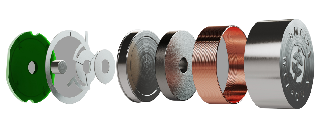 RAVEN, Empire Ears' first venture into metallurgy, marks a pivotal point in the quest for sonic excellence. Far from being a mere aesthetic choice, the incorporation of metallurgy, specifically with the 316L stainless steel plate in the RAVEN's faceplate design, demonstrates their profound commitment to elevating the performance of the W10 bone conductor. This steel plate does more than please the eye; it aids in the resonance, amplification, and dispersion of sound waves, synergizing with other elements to achieve a distinctive sound signature and optimizes RAVEN's acoustic performance.