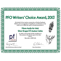 "The air and separation of the musicians and instruments were more noticeable. Vocals became crisper and the transparency increased [with the Silver Dragon] ... I forgot about the cables and just enjoyed the music."