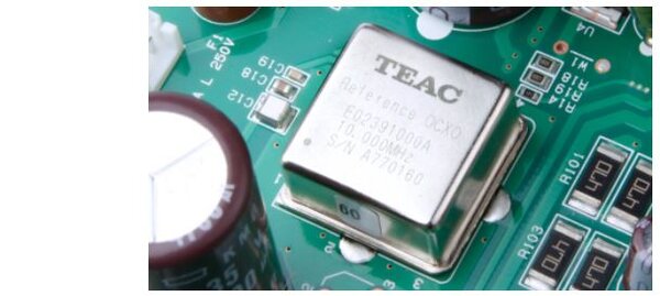 Since temperature has a huge effect on the accuracy of the crystal oscillator, minimizing temperature changes and maintaining it at an ideal level are extremely important in order to generate an accurate clock signal. The CG-10M employs an innovative oven-controlled crystal oscillator, the TEAC Reference OCXO, to reduce oscillation frequency fluctuations caused by temperature changes.