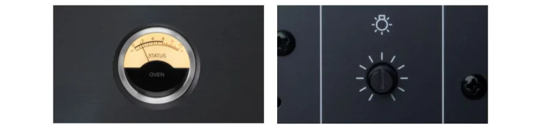 The OVEN STATUS analogue gauge, located in the middle of the unit, a TEAC trademark in recent years, shows the stability of the crystal oscillator when in use. As the temperature of the oven that contains the crystal oscillator reaches the ideal temperature for accurate clock generation, the power consumption of the oven decreases and the gauge points to zero, signaling to the user that the digital processing on the connected device is now controlled by an extremely accurate 10MHz clock signal. The gauge is a backlit type with a dimmer control (including the ability to completely switch the backlight off). * The oscillator is usually stable about 2 minutes after the power is turned on. However, at least 10 minutes are necessary for the clock to reach an ideal condition.