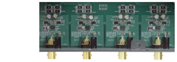 Four gold-plated BNC connectors (50 ohms) are provided to deliver clock signals to multiple devices. Up to four devices that support a 10MHz input may be connected simultaneously, including USB DACs, network players, and SA-CD players.
